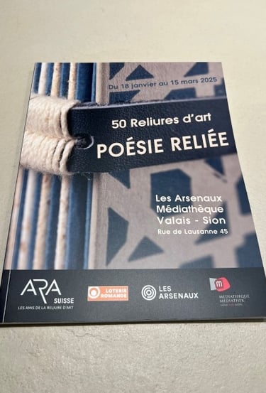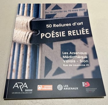 Du 18 janvier au 15 mars 2025, Marc Louwers a présenté une reliure de création à la médiathèque Les Arsenaux Valais-Sion en Suisse dans le cadre de l’exposition « poésie reliée » organisée par l’ARA Suisse (Amis de la Reliure d’Art) et où 50 reliures de création ont été présentées sur des ouvrages de poésie.