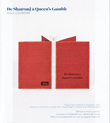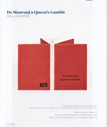 Du 30 août au 20 septembre 2023, Marc Louwers a présenté la reliure "De Shatranj à Queen's Gambit", un texte qu’il a lui-même écrit sur l’histoire du jeu d’échecs.