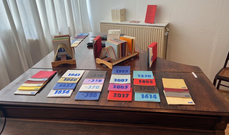 Du 30 septembre au 2 octobre 2025, Marc Louwers a présenté un ensemble de reliures dans le cadre de l’exposition « Nouveaux pionniers, savoir-faire et entrepreneuriat » organisée par la ville de Bruxelles à la Tour à Plomb, rue de l’abattoir 24 à 1000 Bruxelles.