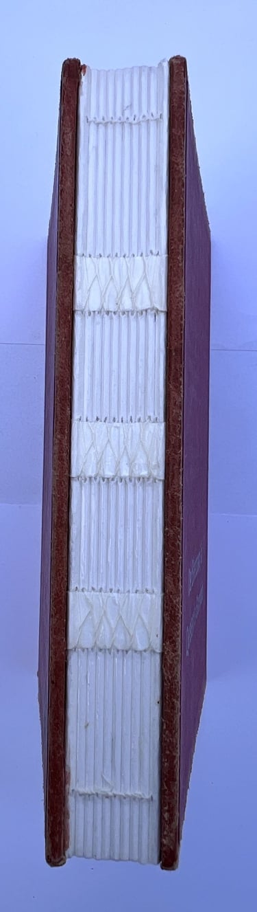 Reliure : couture croisée en fils de lin sur rubans d’intissé